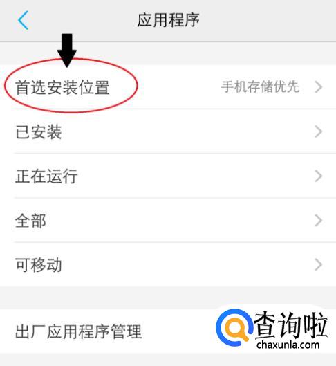 进入到“应用程序”界面之后,点击下方的“首选安装位置”选项。