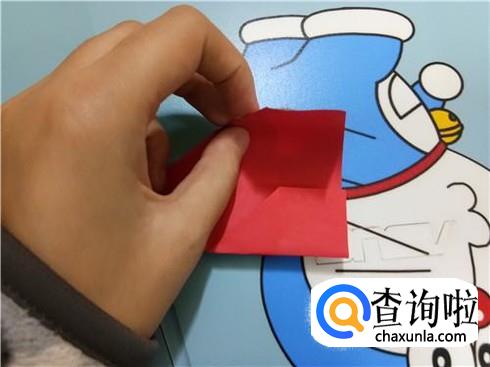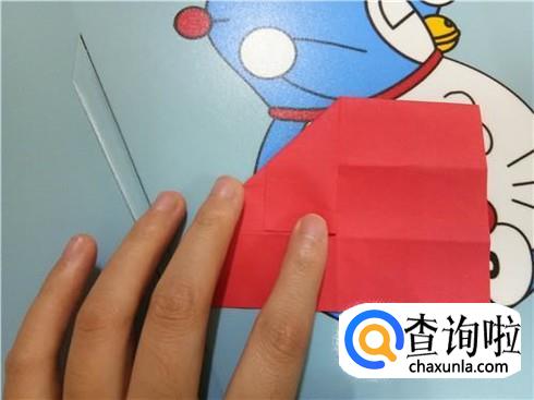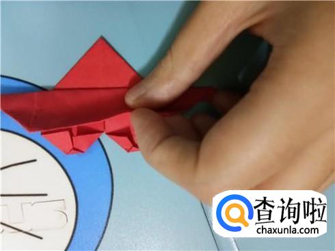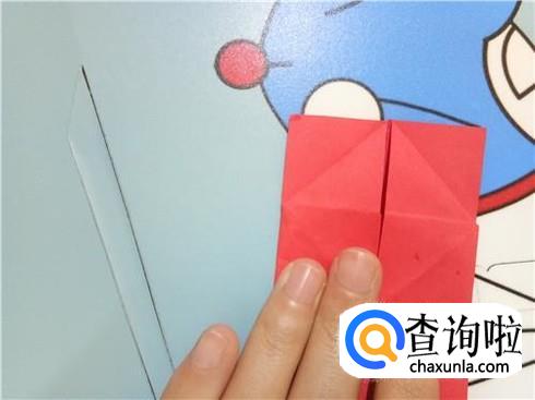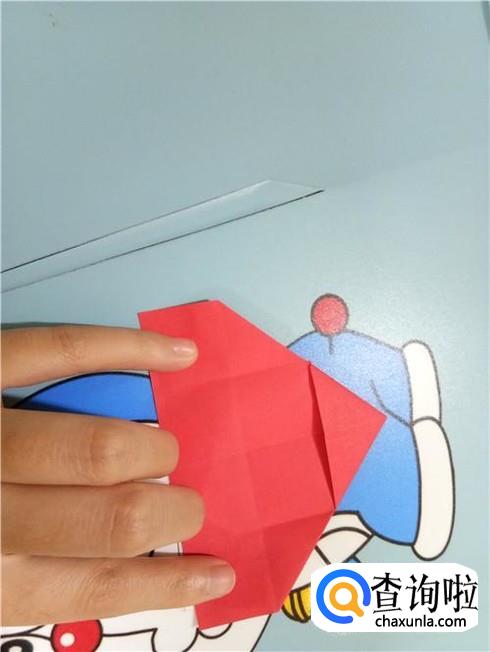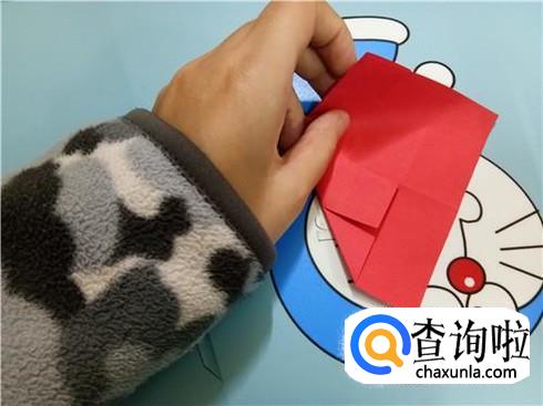 在上边两个三角形的地方根据它们各自的中轴线折叠一下,再整理一下顶点,轻轻的折一小部分回来。
