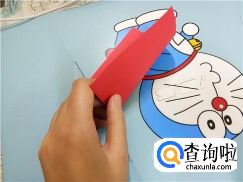 顺势将下方最宽的部分折上去,与刚才折上去的边重合,在后面剩下的这一部分中我们将它来回的折三次,就会形成后面的“翅膀”。