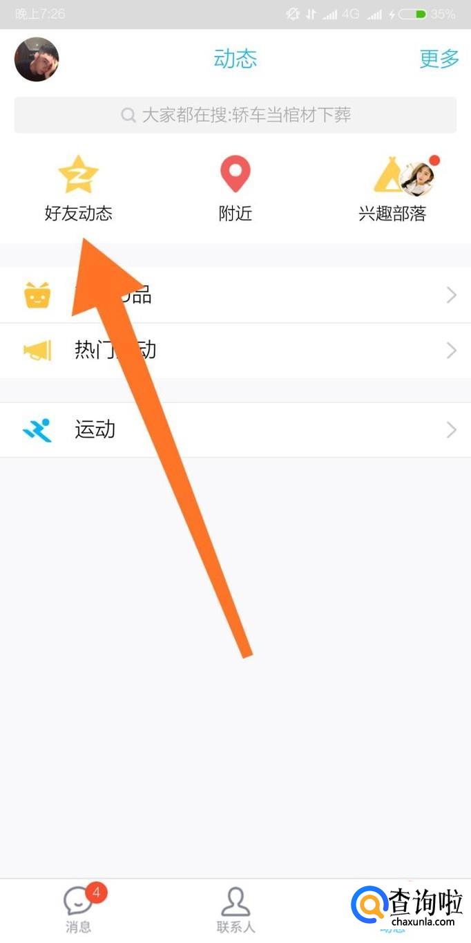 首先进入手机QQ动态页面,点击进入“好友动态”。