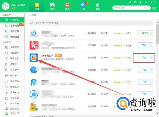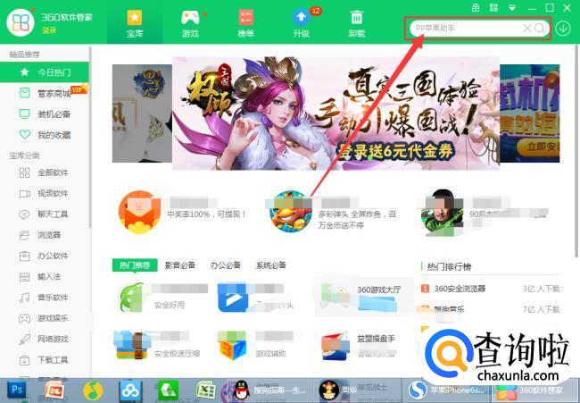 进入软件管理之后,在搜索引擎框内输入“苹果助手”点击搜索。