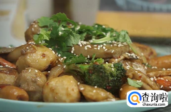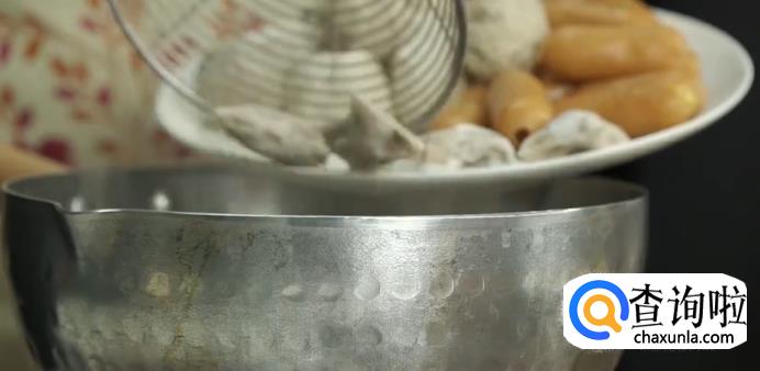 之后先煮耐煮的丸子,再煮青菜,食材煮熟之后捞出待用。