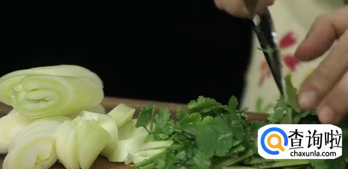 首先切葱、大蒜、香菜、洋葱、备用。