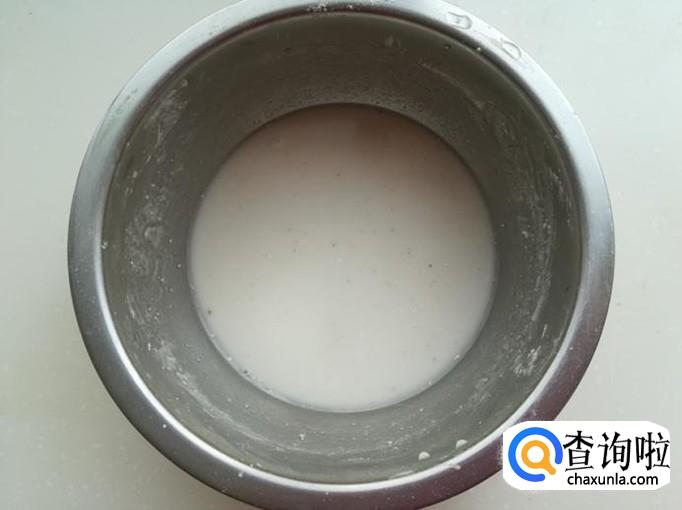 把白矾用水化开倒入土豆粉盆里,搅拌成稍稠的糊状。