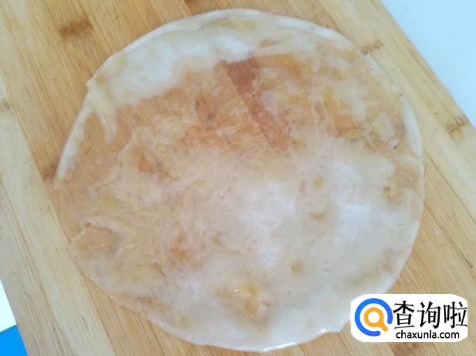 把粉盘取出,倒扣粉盘,把粉皮摊放在案板上,这样粉皮就做好了。