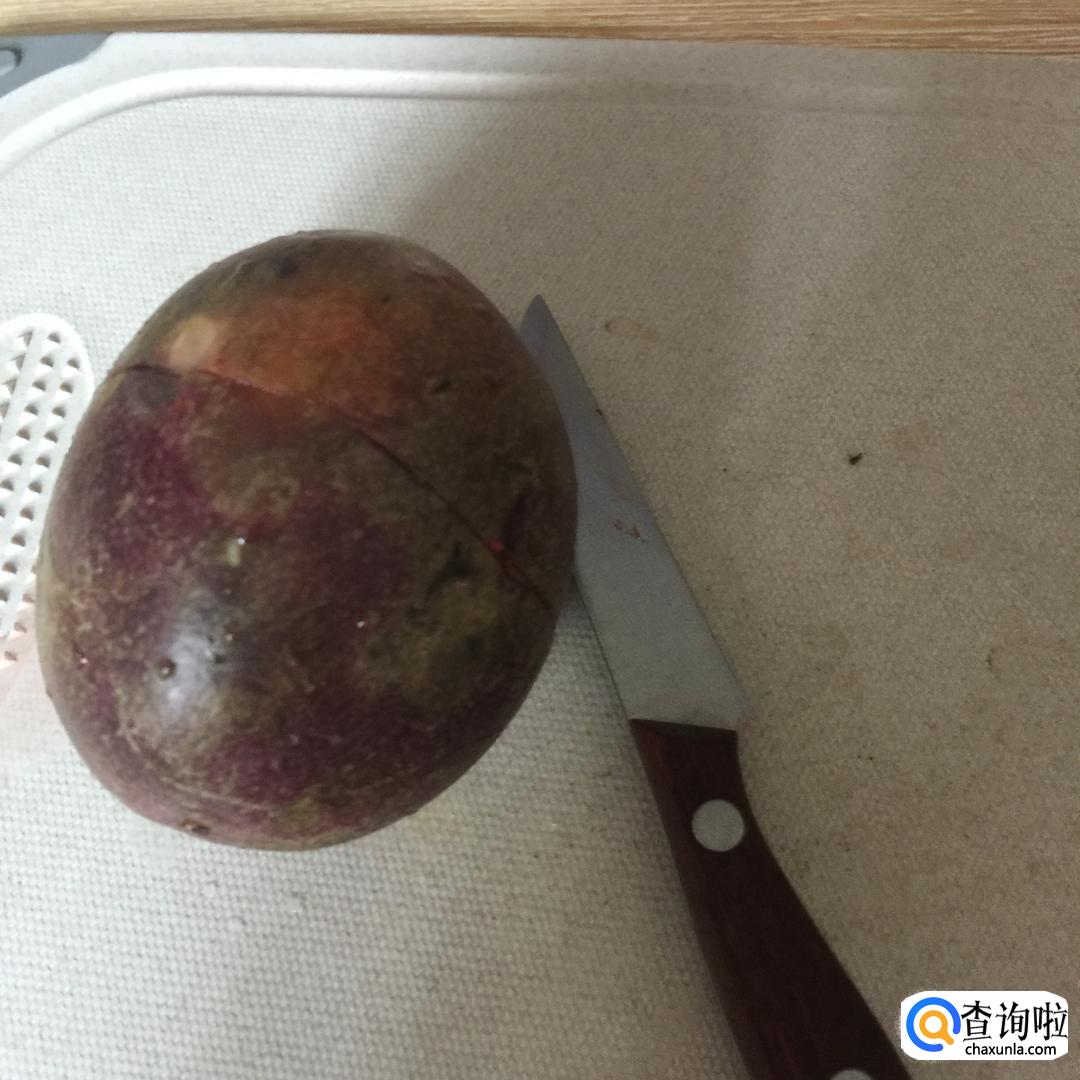 然后用刀在百香果上划一圈。