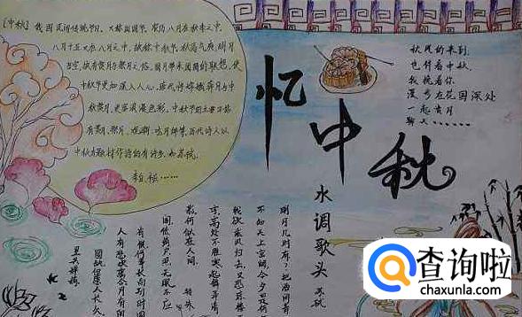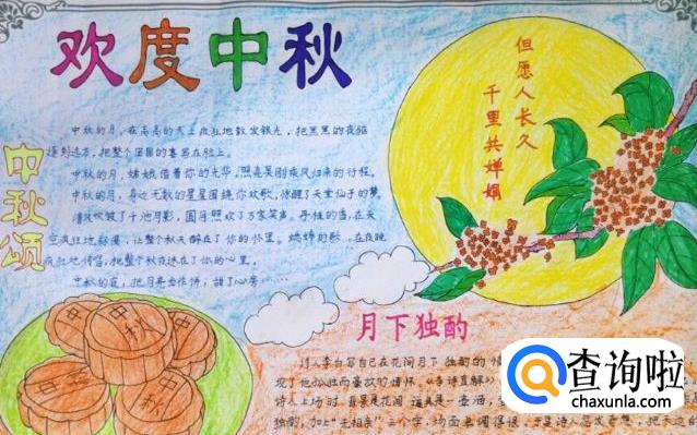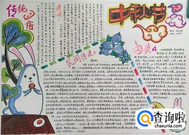 除了嫦娥以外,兔子也是和中秋紧密相关的。如果画不好嫦娥的同学,可以用兔子来代替,文字部分可以描写一点关于中秋的民间传说。