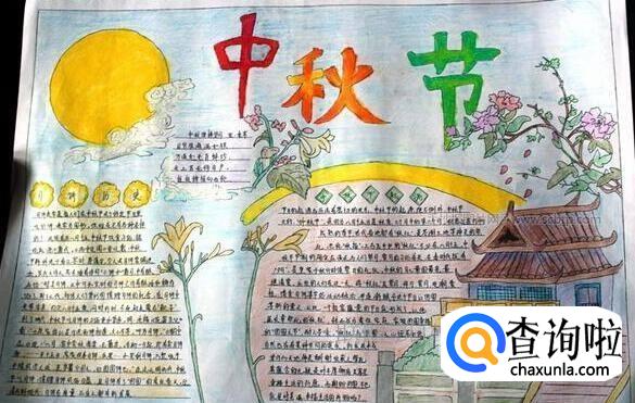 中秋节的手抄报图片可以用一些彩色的云彩,还有一些带有古典感觉的建筑局部,搭配和中秋有关的诗歌,很有意境。