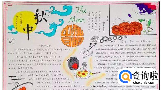 中秋节还有一项必不可少的,那就是月饼。将月饼画在手抄报上,再配以月亮和祥云,浓烈的节日氛围就出来了。