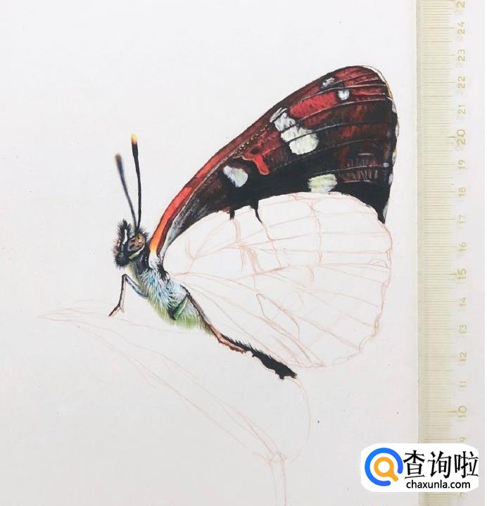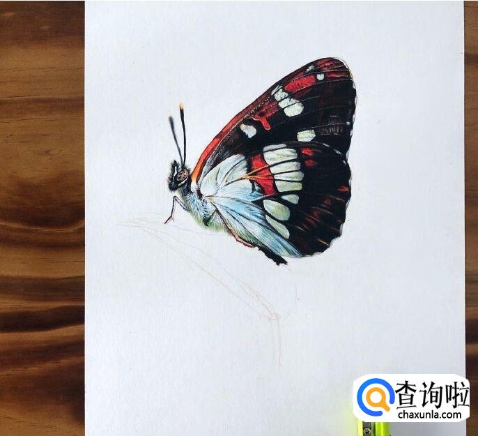 这样蝴蝶翅膀就基本画好啦,都是用彩铅画的,是比较写实的蝴蝶了。