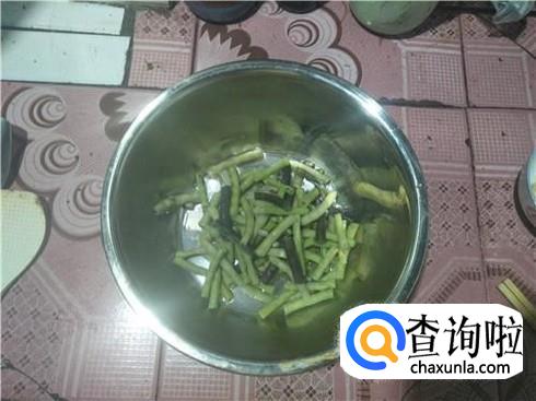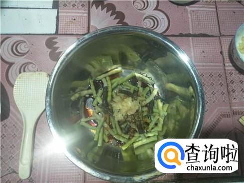 搅拌成功之后,就将它放在那里,大约等五分钟左右,佐料的味道融入进豇豆里面,再装进盘子里,这样会特别的好吃。