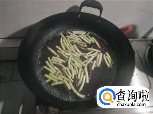 然后,将锅中倒满清水,煮沸,煮沸之后,将豇豆到进沸水里面进行煮,再往清水里面加少许的食盐,这样当把豇豆捞起来的时候,本身会还有一点点的盐味,这样会比较的好吃。