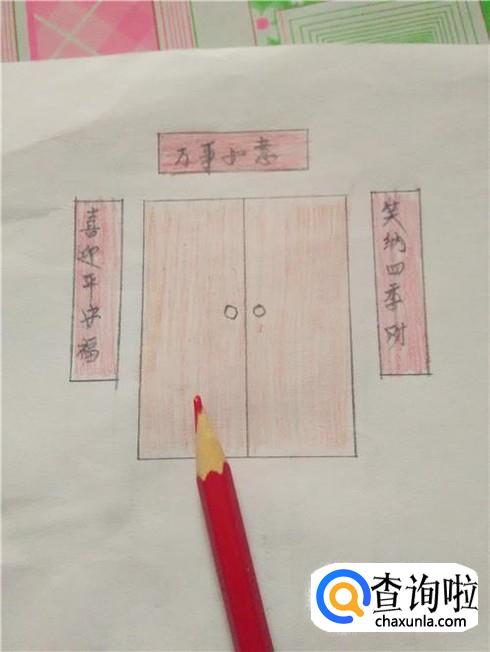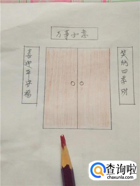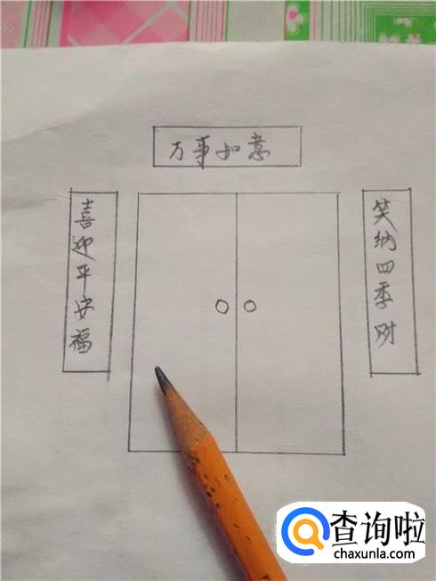 再用铅笔和直尺在门框上方画一个长方形,表示横批。