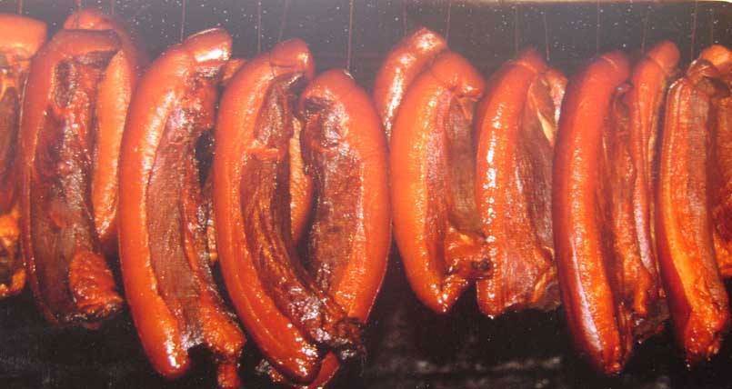 橘子皮也是一种不易燃烧而且味道特别香的材料,经过橘子皮的烟熏后猪肉会变得更加油亮。