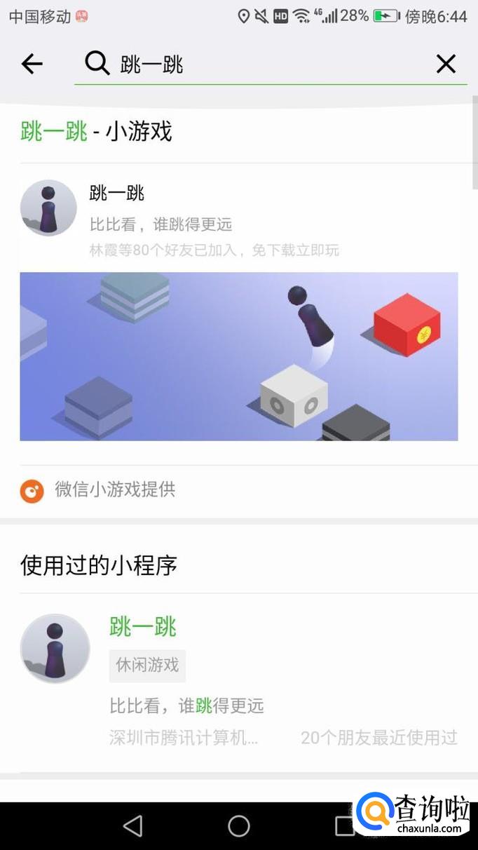然后输入跳一跳,就会搜出来跳一跳的小程序游戏,如下图。