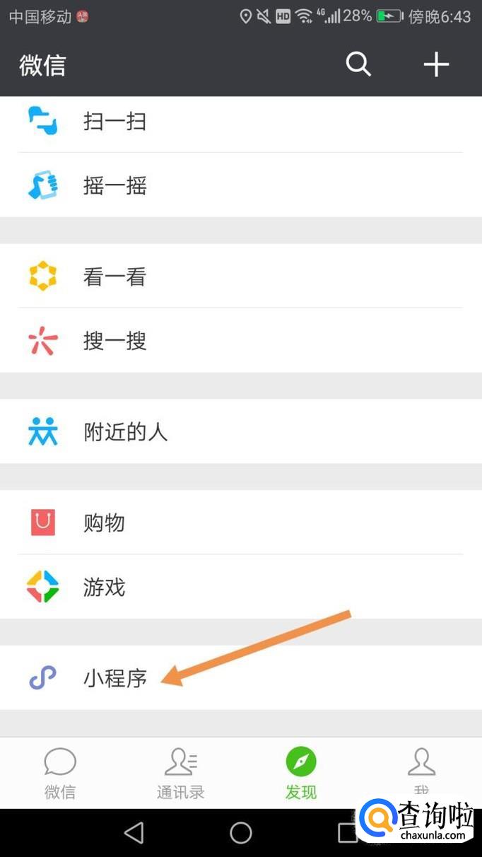 每个微信号都可以玩跳一跳,如果不能玩了,可以先更新微信试试,然后打开微信,点击发现,最下方有一个小程序,将其打开,如下图。