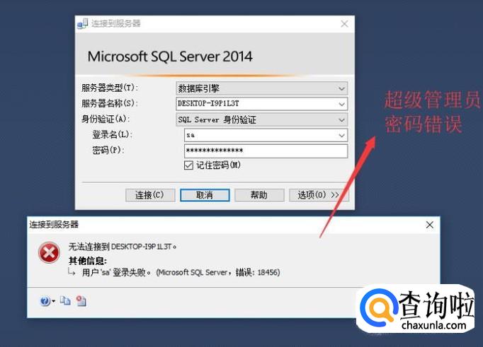 首先我们看一下超级管理员密码错误的提示,如下图所示,当输入错误的sa密码时,系统会拒绝登入