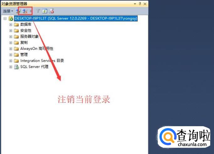 设置完密码以后,我们需要选择当前的数据库,点击顶部的注销按钮,将数据库断开链接,如下图所示