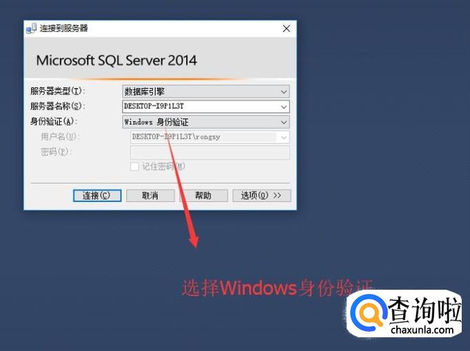 接下来我们切换登录方式,将登录方式切换到Windows身份验证,如下图所示