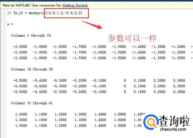 当然matlab接收两个参数的时候,这两个参数可以是一样的值,如下图所示
