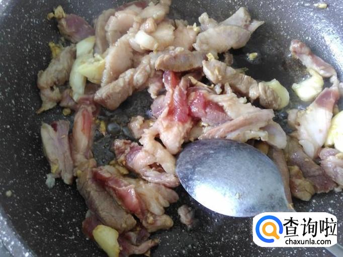 肉丝下锅,大火翻炒。