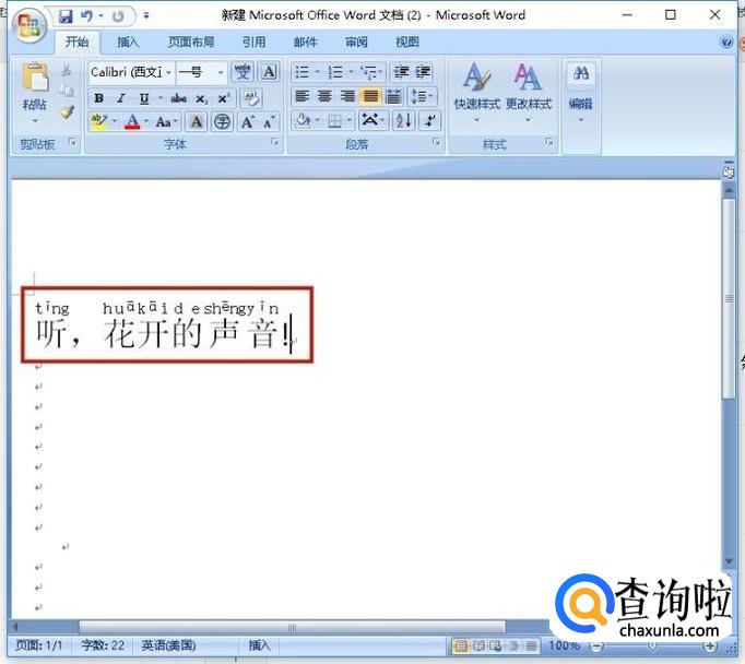 对于中文的音标,我们可以为汉字加上拼音,音标就出来了。打开word文件,输入汉字,选中需加拼音的汉字。