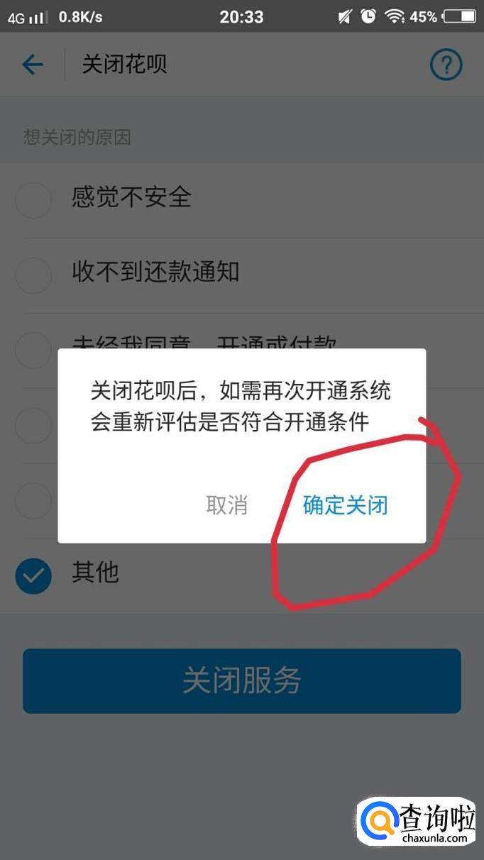 然后点击【确认关闭】,这样就把花呗关闭好了,如图