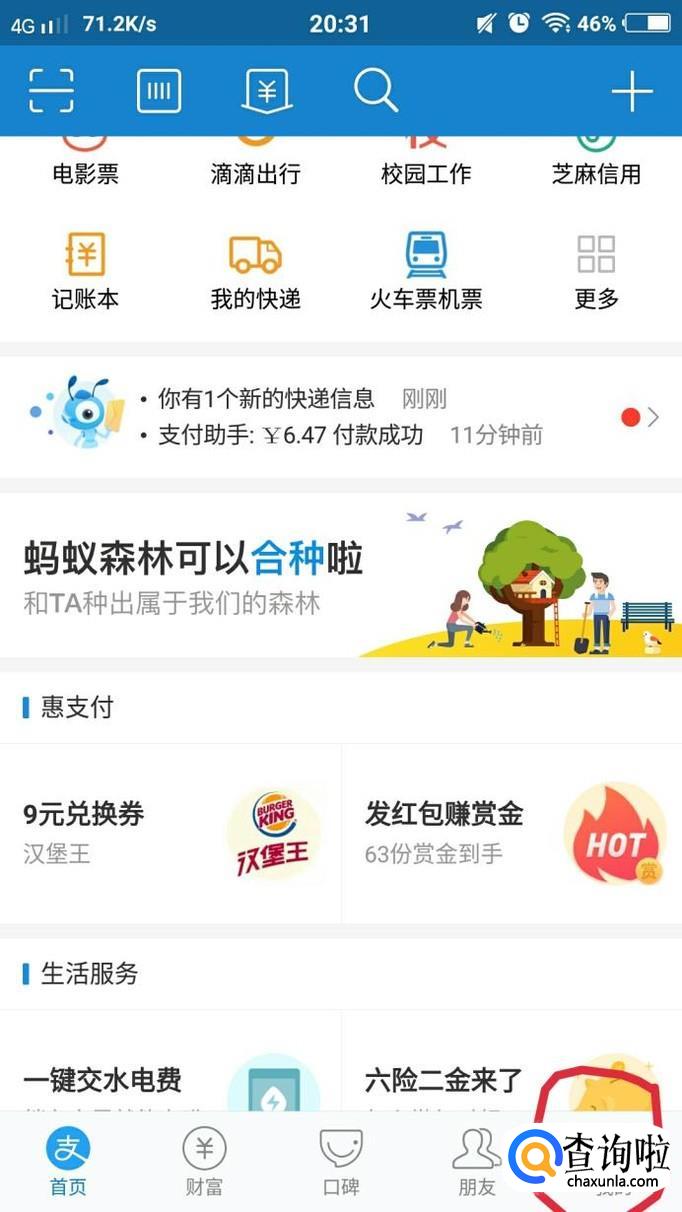 首先打开支付宝,点击首页【我的人物标识】,如图