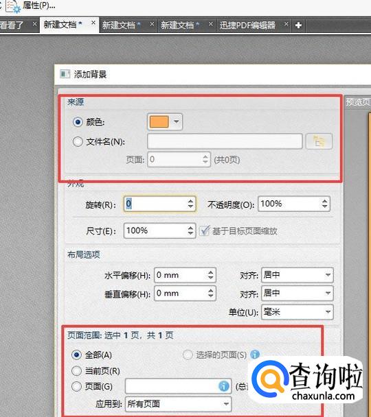 点击添加后,需要添加背景的小伙伴可以选择颜色背景或者是图片背景,然后设置页面范围,设置好后,点击确定就可以在文件中添加了哦。