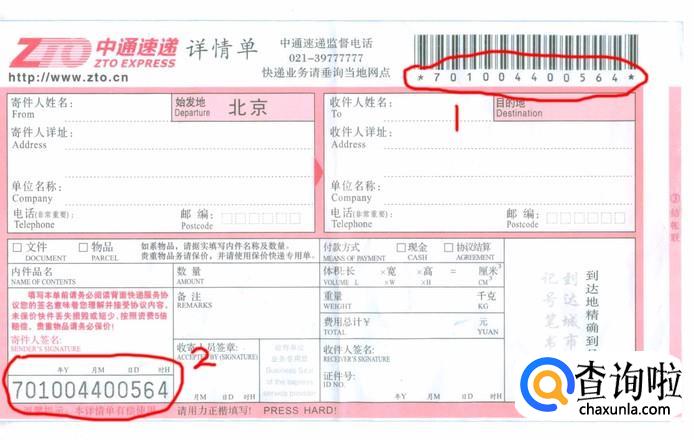 首先,我们要找到我们要查询的中通快递编号。