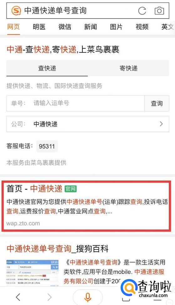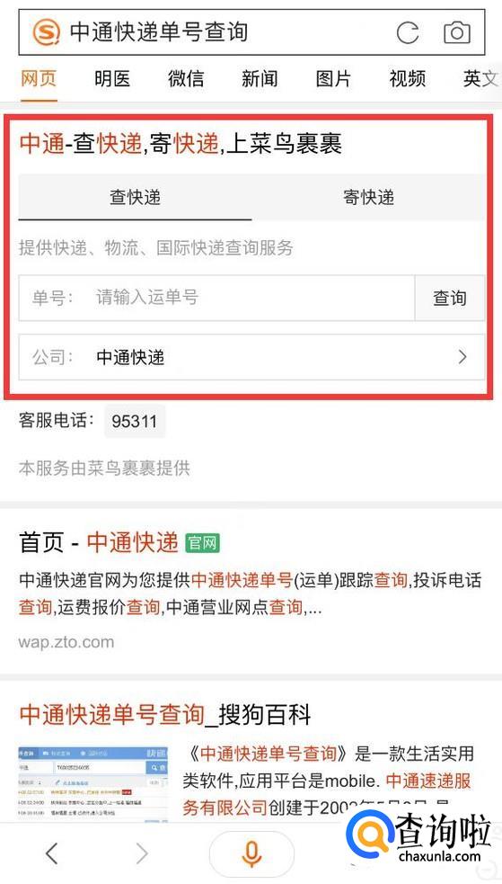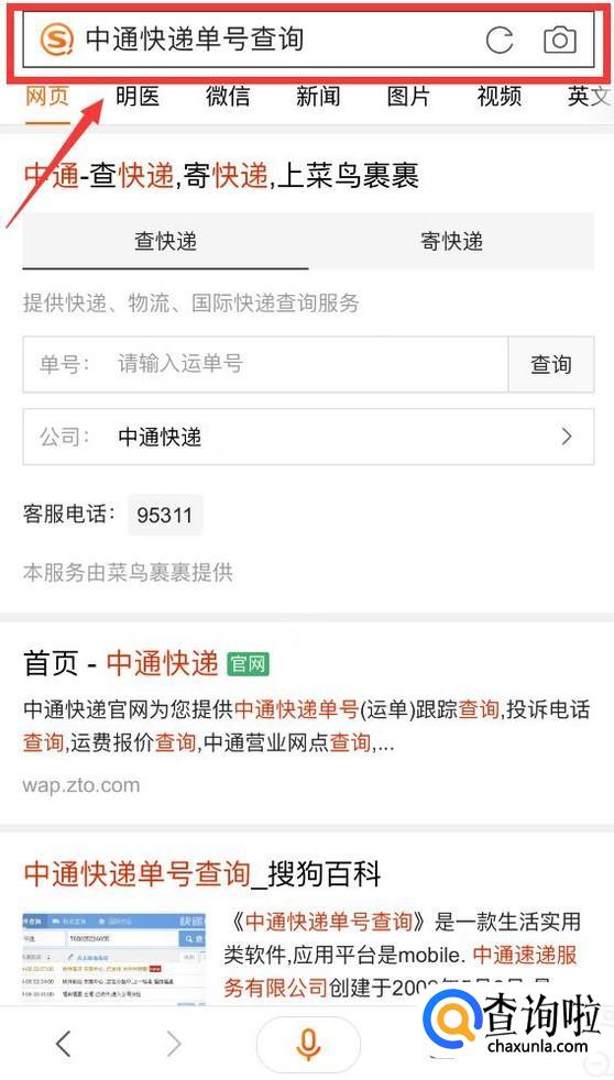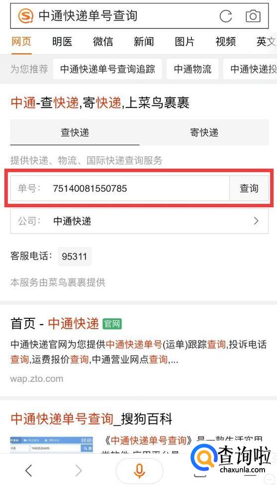 然后打开浏览器搜索“中通快递单号查询”。