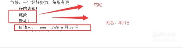 最后就是表明自己的决心,然后再在末尾再开一行写上敬语。再写上申请人的名字,时间就可以了。