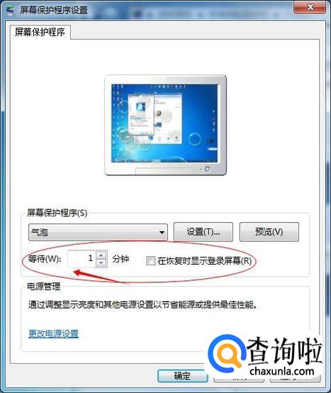 记得设置“时间”。这个时间是指多长时间不操作电脑后,屏幕保护程序开始运行。