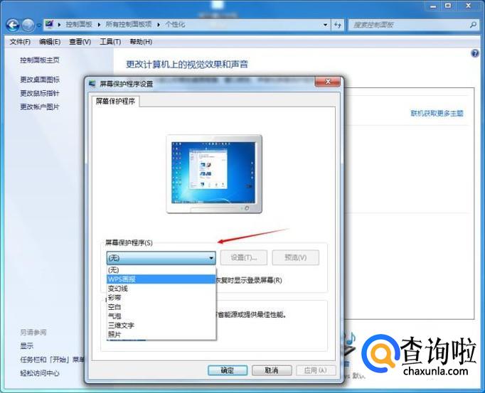 打开“屏幕保护程序”,并进行设置。设置完之后可以预览,是不是自己想要的效果,如果不喜欢系统自带的效果,还可以自己定义图片轮播。