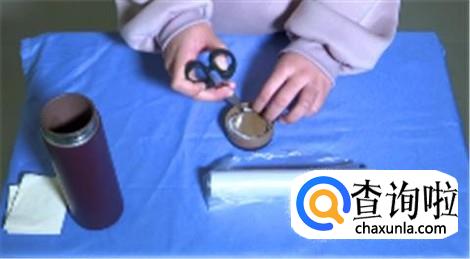 再教大家一个办法,扯一块保鲜膜,用手搓成细长条,长度能够围绕杯盖并余出来一点。