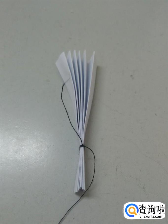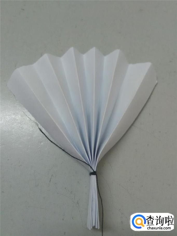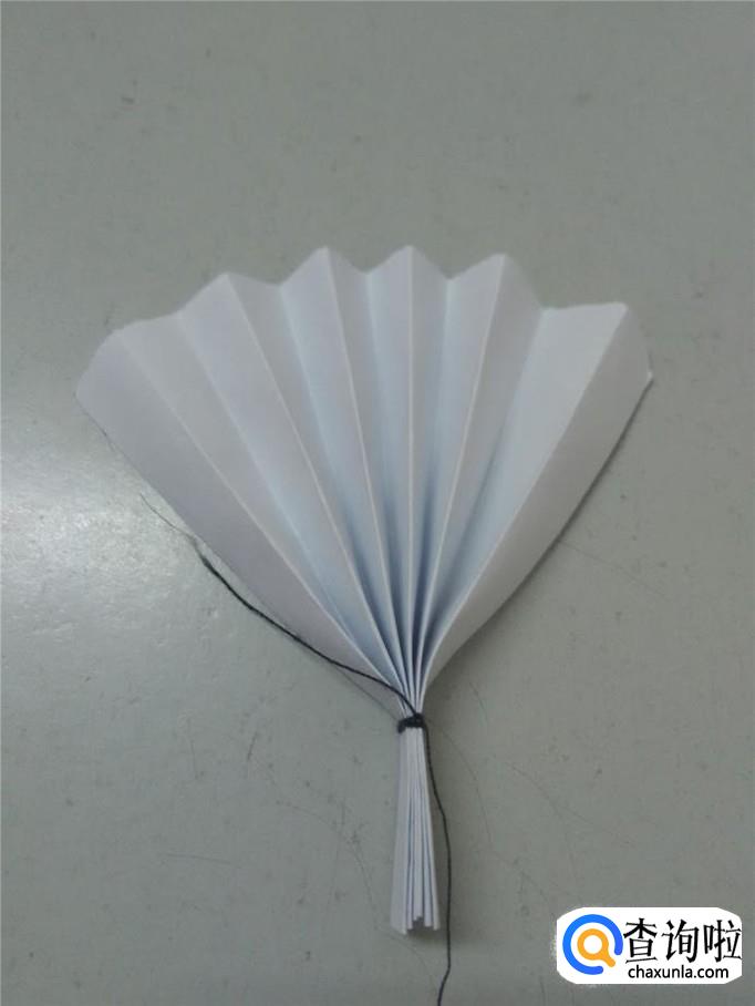 把线上面的部分打开,就是一把纸扇,下面的部分就是扇把儿,拿着就可以扇风了。