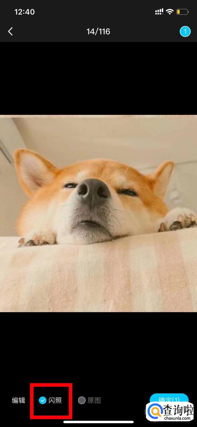在下方有一个【闪照】选项,点一下有蓝底白勾就可以了。