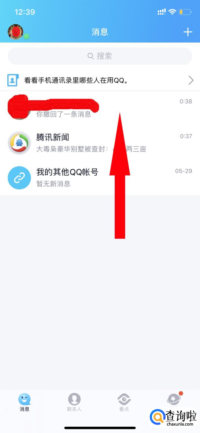 点击你希望发送闪照的人的聊天框,进入聊天界面。