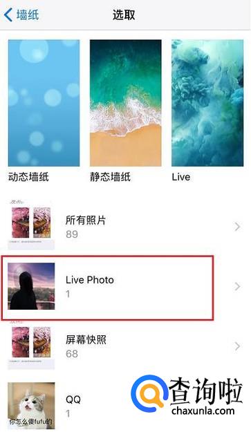 在“Live Photo”相册中,选中刚刚生成的动态壁纸。