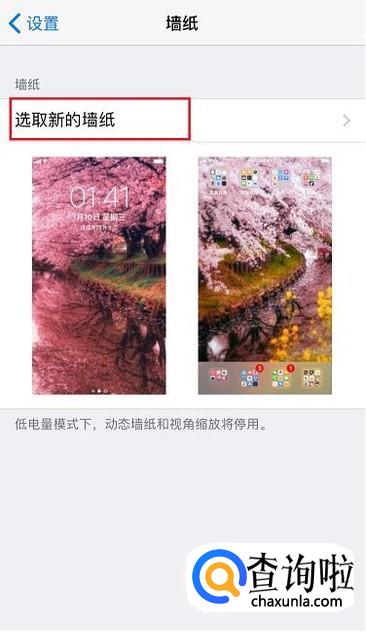 动态壁纸生成后,进入系统设置的墙纸界面,点击“选取新的墙纸”。