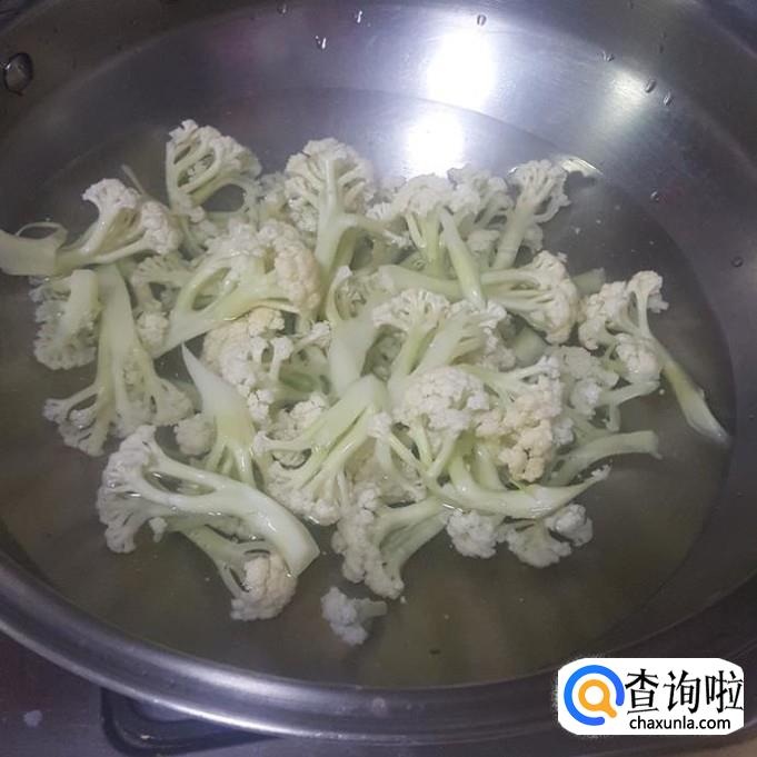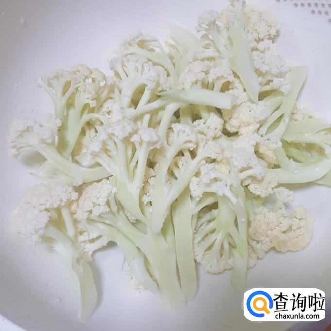 菜花洗净劈成小朵,用热水焯一下,捞出过凉水,控净水备用
