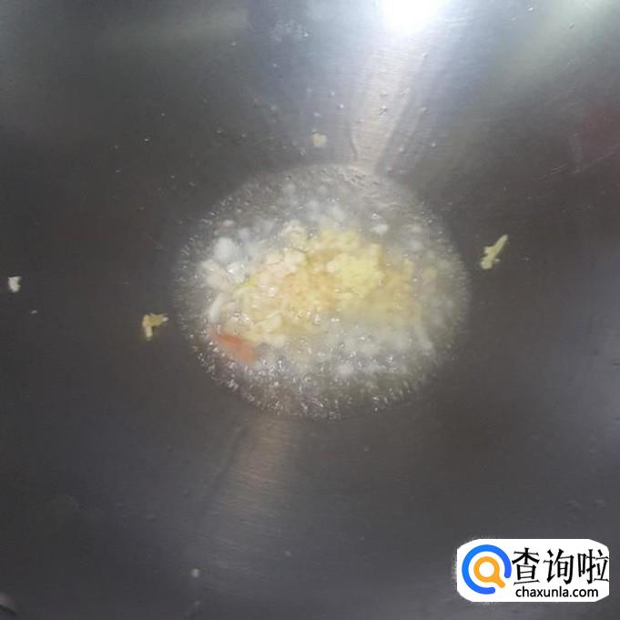锅烧热加油烧至7成,加入姜蒜末爆香