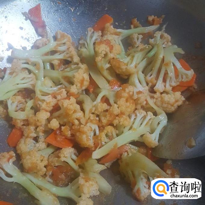 花菜,番茄,红萝卜少许,姜蒜葱,番茄酱,料酒,生抽,盐