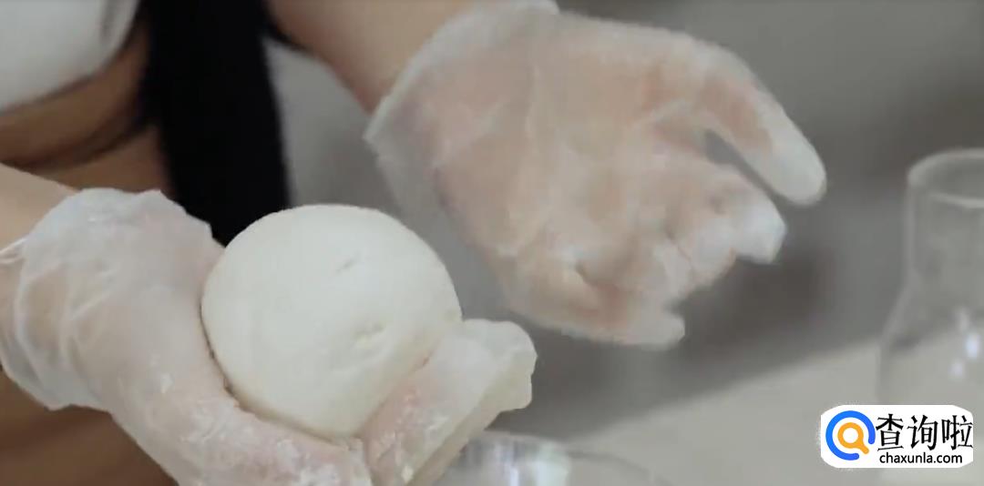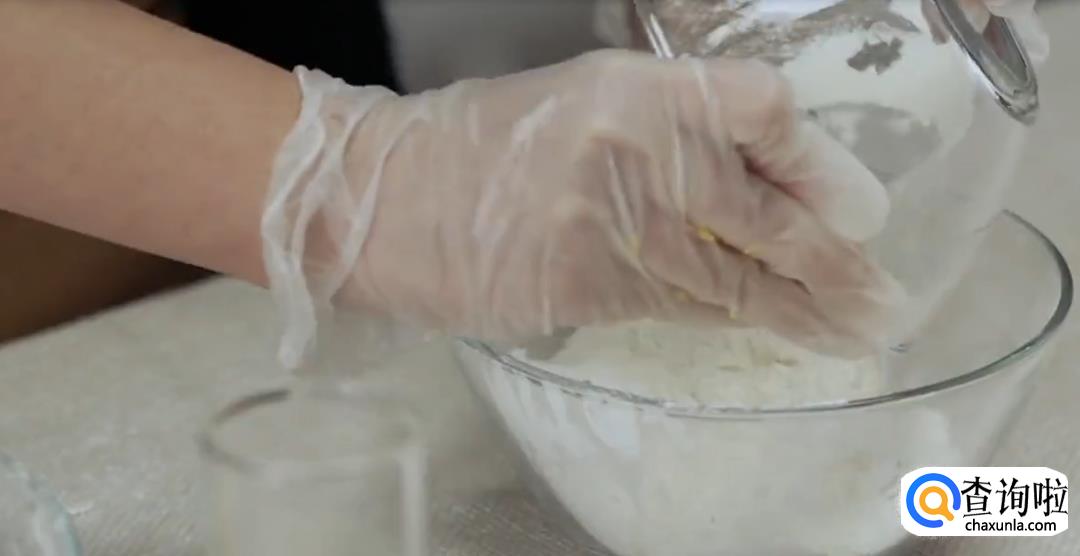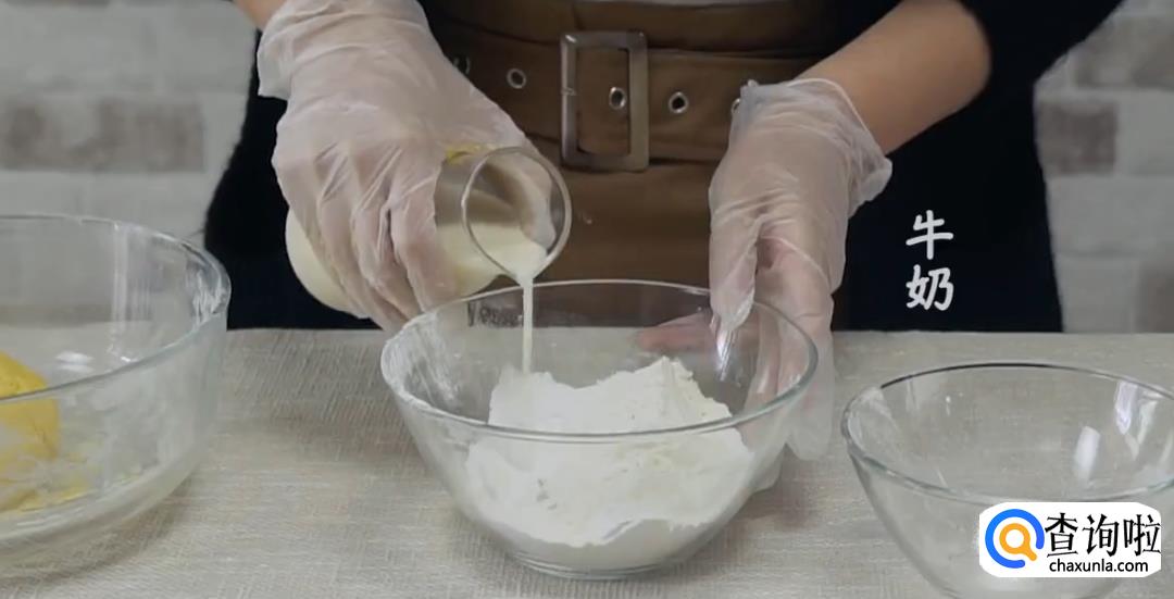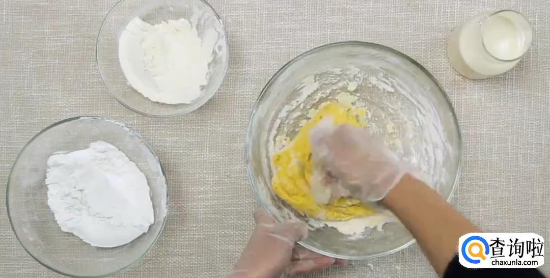 糯米粉中加牛奶,搅拌揉成团状。