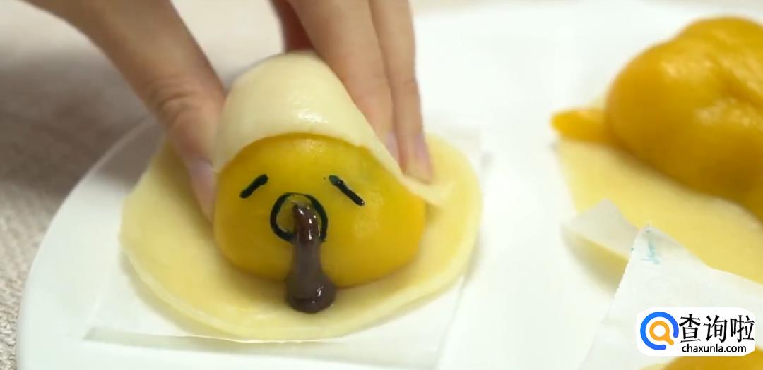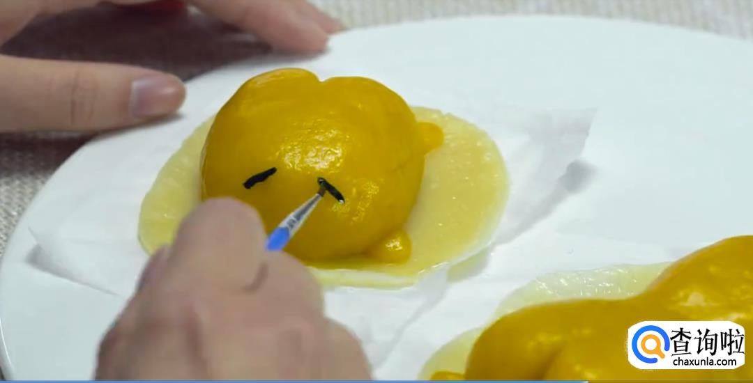 开锅后懒蛋蛋就做好了,蘸食用色素给懒蛋蛋画脸,用筷子戳不可描述的部位就可以挤出巧克力酱啦!