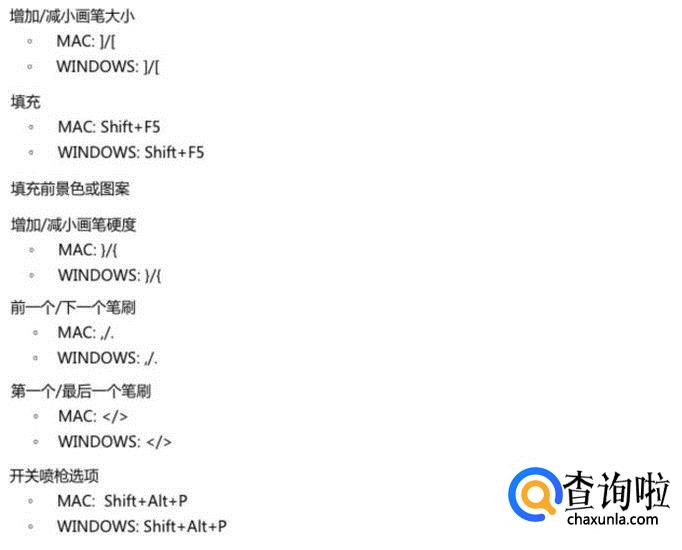画笔/填充操作快捷键如下图,能够快速使用画笔/填充操作。