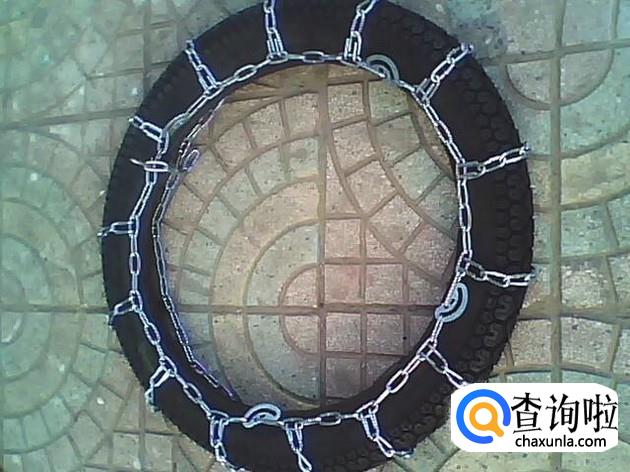 然后我们就可以将我们的摩托车轮胎卸下来,然后绑上我们自己制作好的铁链,并用绳子和铁钩固定好。