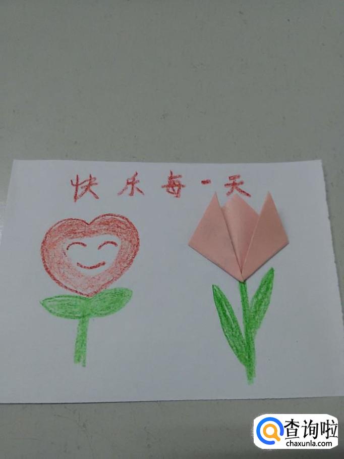 最后用红笔在最上方写下快乐每一天五个字,简单又漂亮的贺卡就做好了。