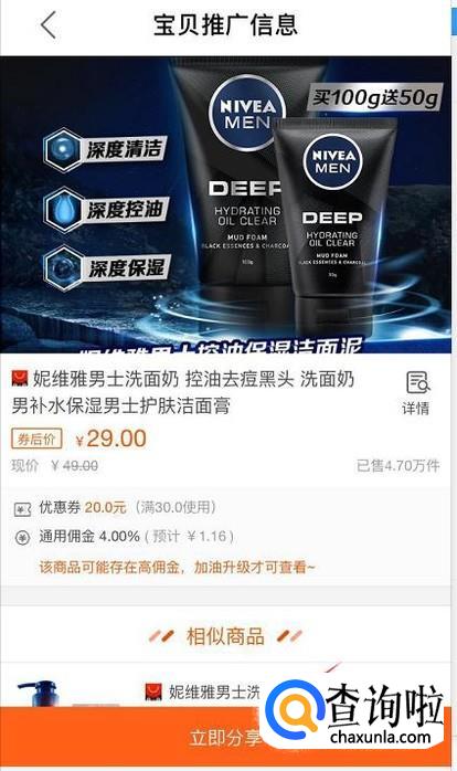 点击到宝贝详情页面下方会出现一个立即分享的功能。