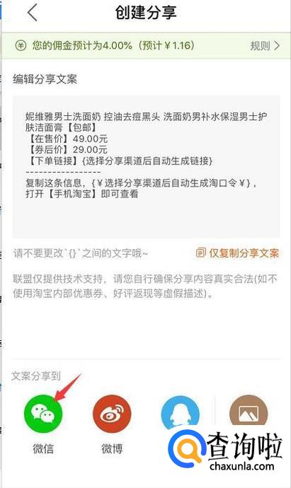点击立即分享后点击微信随便分享给一个好友或者自己的微信。